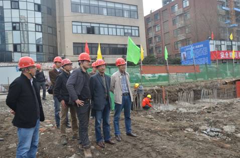 一年之計在于春,開春后工程全面啟動,安全工作備受關注。3月19日,省地礦局楊茂華局長、祝世強副局長帶領局技安處處長李躍林、經管處處長李廷強、局工會主席李健等到我院承擔的鹽道街出版大廈基坑項目檢查指導安全工作。