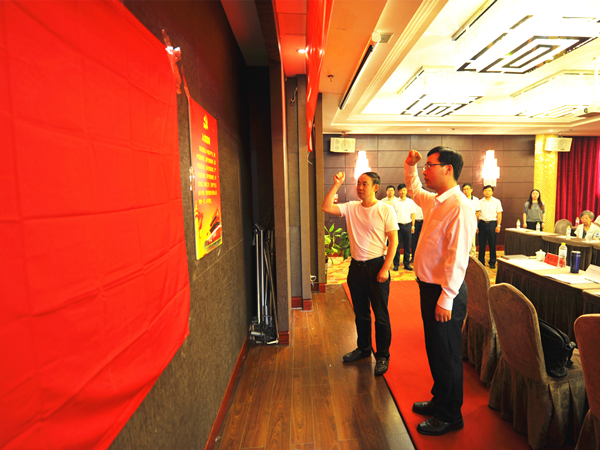 會上,新黨員面對黨旗莊嚴宣誓,全體老黨員重溫入黨誓詞,會上表彰了2015-2016年度先進黨支部和優秀共產黨員,李強作為“優秀共產黨員”代表作了交流發言。